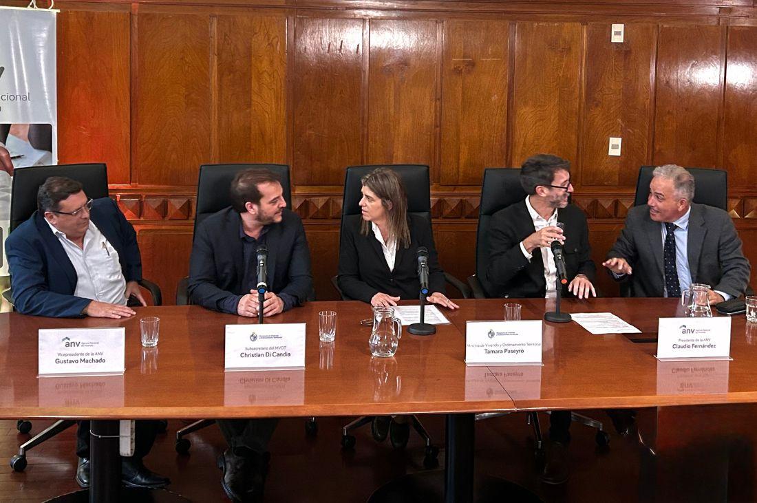 El acto contó con la presencia de la ministra de Vivienda y Ordenamiento Territorial Tamara Paseyro, el subsecretario Christian Di Candia, el director nacional de Vivienda Milton Machado, el intendente de Canelones Francisco Legnani, el director de MEVIR Roberto Saravia y las autoridades de la ANV, Claudio Fernández (presidente) y Gustavo Machado (vicepresidente). También participaron autoridades del directorio anterior y representantes de organismos nacionales y departamentales.