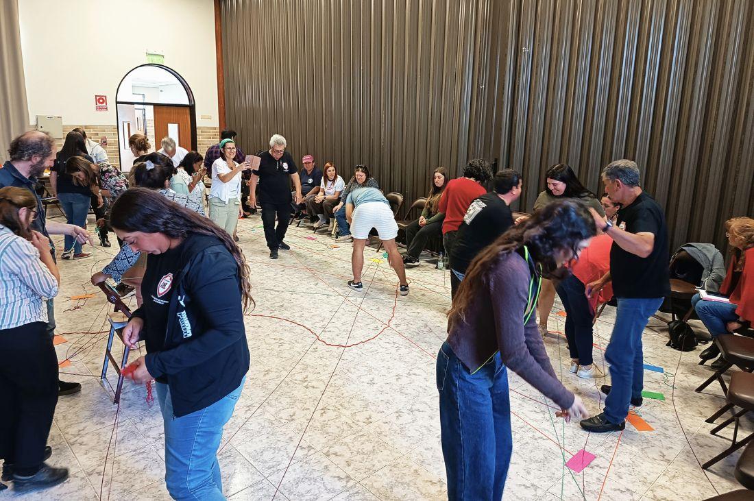 El objetivo principal del taller fue propiciar un espacio de intercambio y reflexión sobre los recorridos, experiencias y desafíos que atraviesan las cooperativas en etapa de obra junto a sus IAT, destacando el enfoque interdisciplinario como uno de los componentes centrales del proceso.