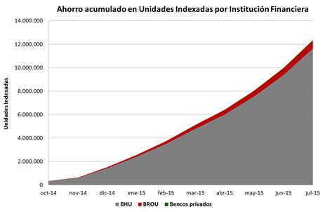 Al 31 de julio de 2015 se han ahorrado más de UI 12.5 millones (aproximadamente 1.3 millones de dólares) en el programa. La institución que tiene mayor participación es el BHU, consistente con la predominancia que tiene en cantidad de cuentas inscriptas al programa.
