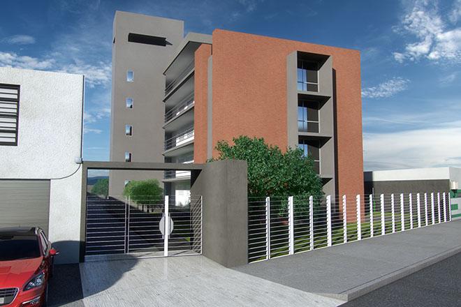 Se trata de un bloque lineal implantado en el sentido longitudinal del predio y se proyectan 7 unidades por planta del nivel 1 al 3, y 4 unidades en el nivel 4, además del salón comunal con frente a la Av. Millán.