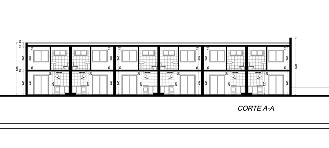 Se trata de un conjunto habitacional conformado por 6 unidades de vivienda de interés social dúplex, todas de 2 dormitorios. En planta baja, constan de estar-comedor, cocina integrada y patio con parrillero.