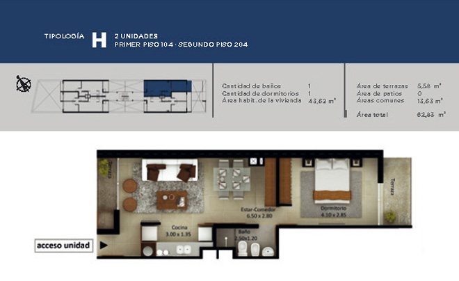 | Tipología | Dormitorios | Viviendas | Baños | Área Habitable (m2) |