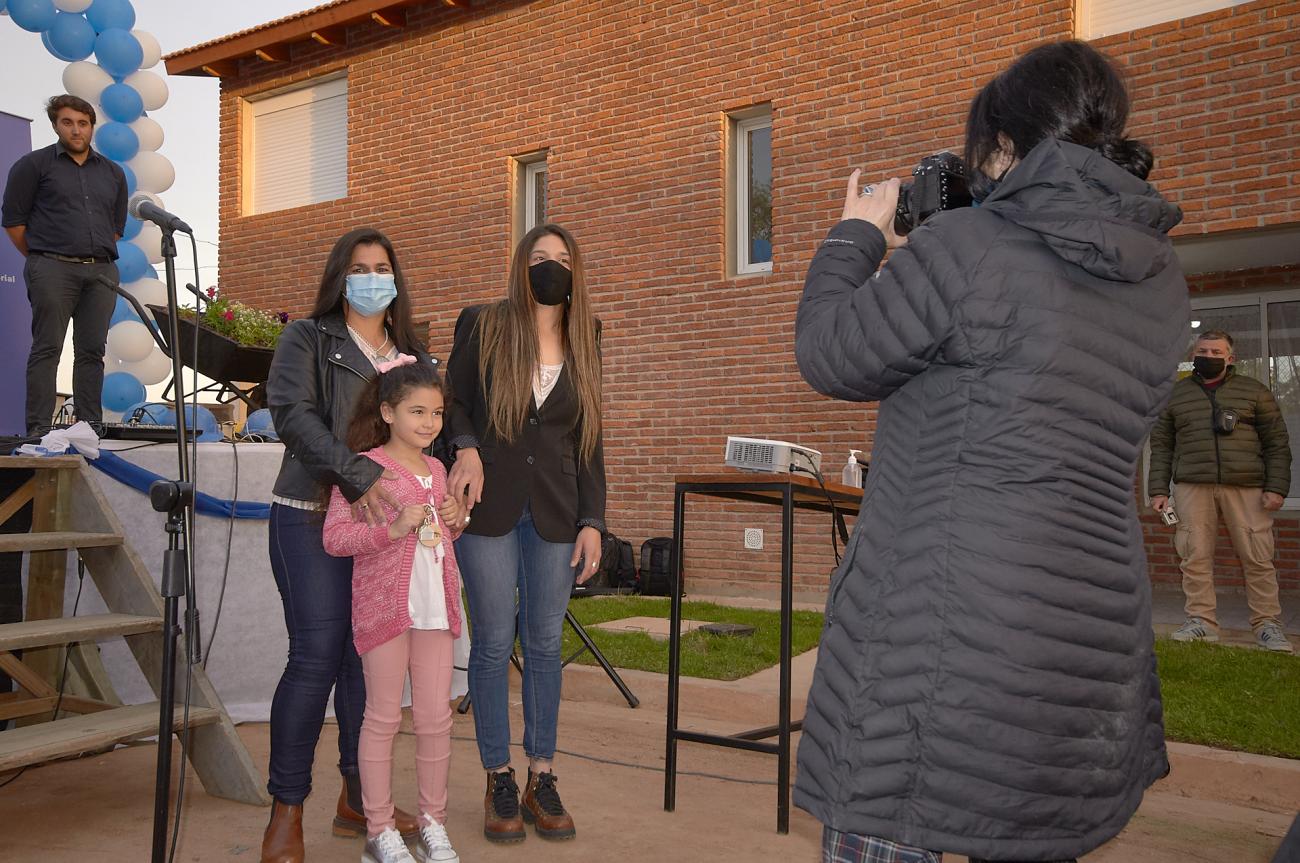 Rodeados de familiares, amigos, autoridades y personas que acompañaron en el proceso y que, de algún modo, lo hicieron posible, Claudia una de las integrantes de la cooperativa, fue la primera en darle la bienvenida a los presentes y expresar, en nombre de todos sus compañeros cooperativistas, qué significa poder inaugurar estas 28 viviendas.